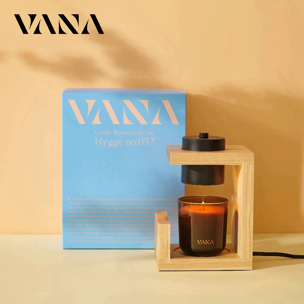 3. VANA 實木款可定時香氛暖燈禮盒 可調光 附燈泡 純天然植物蠟燭 融蠟燈
