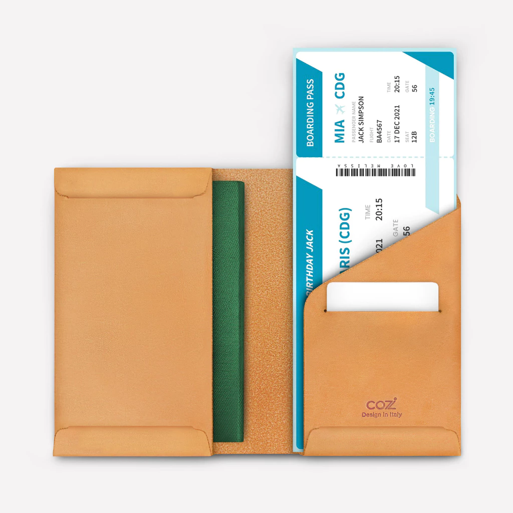 極簡設計,採用義大利植鞣革手工製成,個人版可收納1本護照、1張登機卡和1張卡片;家庭版可收納4本護照、4張登機卡和2張卡片