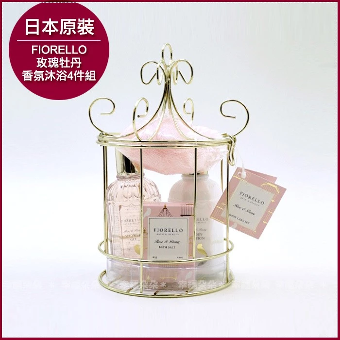 41. 日本進口FIORELLO玫瑰牡丹香氛沐浴4件組(鳥籠造型)
