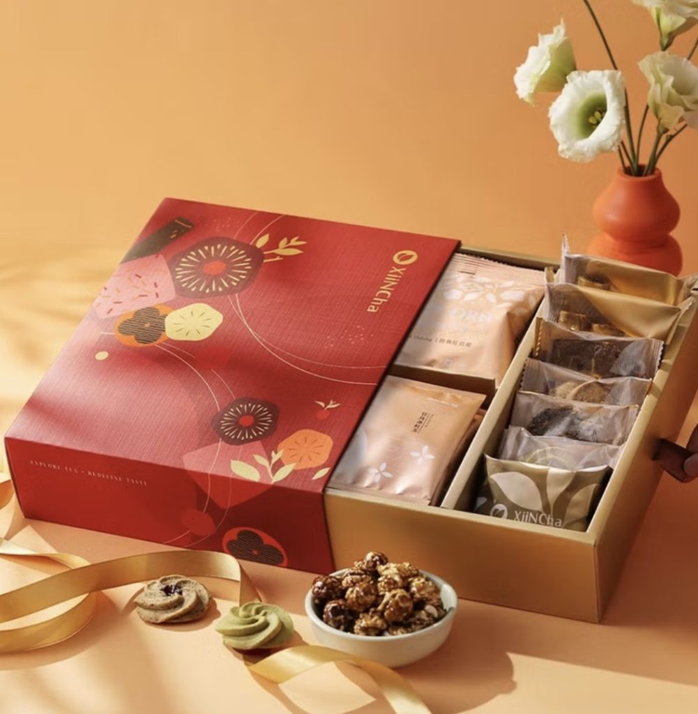 滿滿年節氣氛的新年禮盒!大紅色的儀式感,長輩最愛,也不失現代的fancy感,台灣在地好吃茶酥跟茶葉