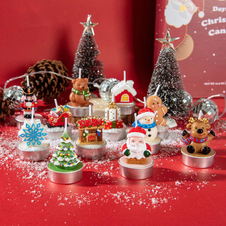 超級無敵可愛的手作蠟燭!!全程手工雕模與彩繪,12 款經典元素做成迷你手作蠟燭,有聖誕老公公、小聖誕樹、小薑餅人…