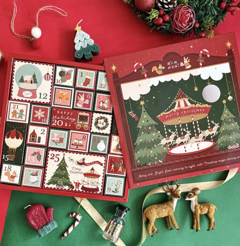 一樣是森小姐的德國果茶,做成漂亮的聖誕倒數日曆!盒子還有很多小巧思,可以玩拼圖、拼字,也有搭小蠟燭等等其他驚喜小禮物