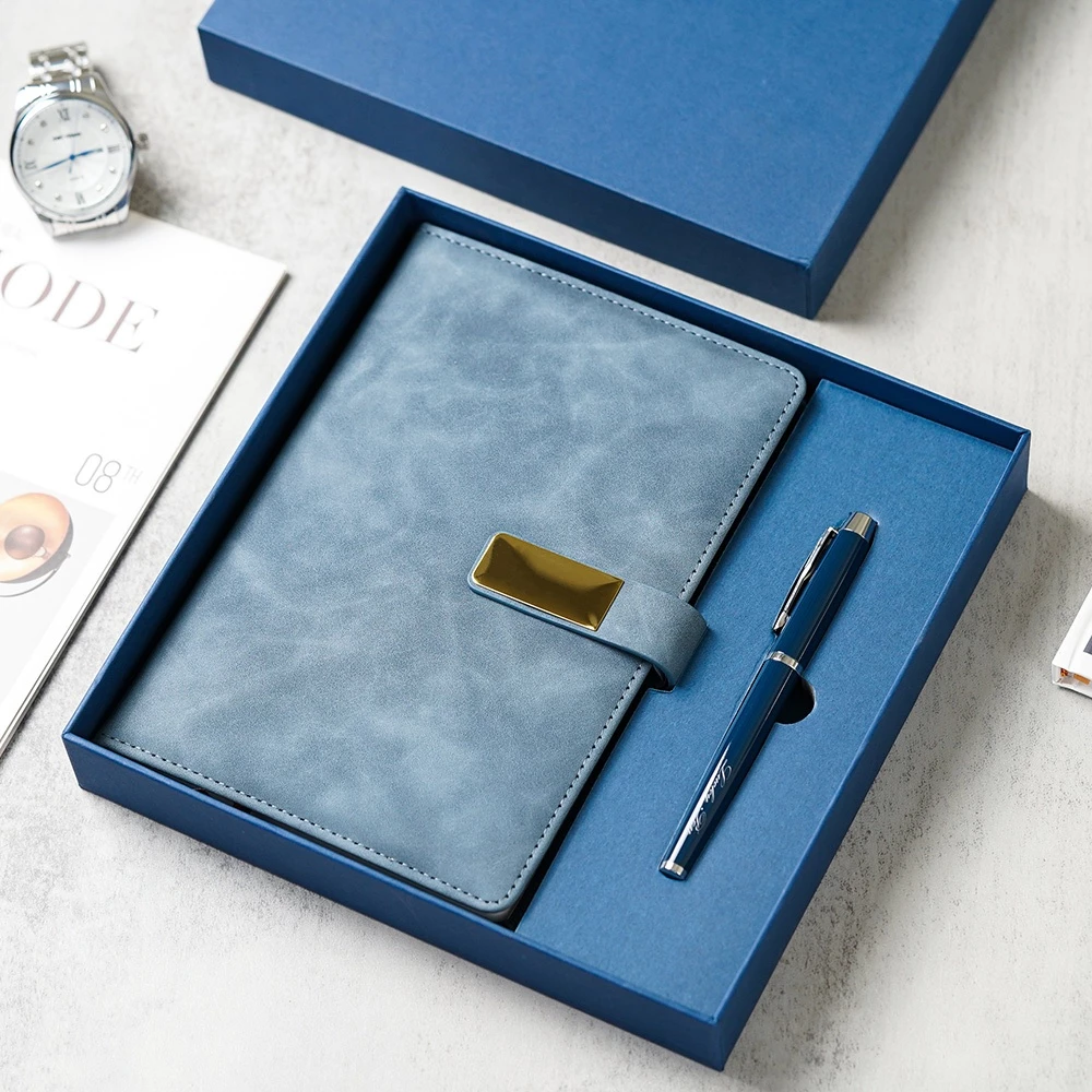 1. 【BRAVOMART HOME】客製化刻字 雅墨典藏皮革筆記本 天青藍 鋼珠筆禮盒組