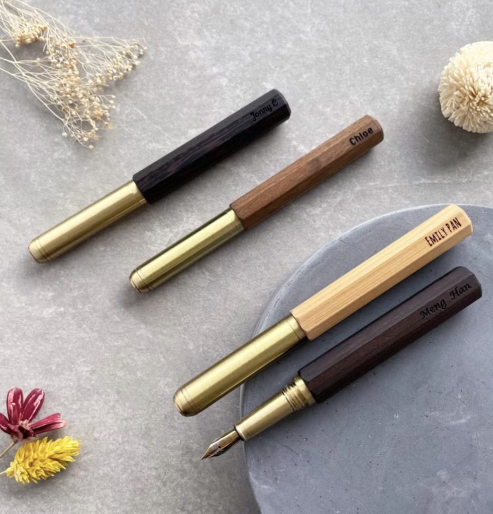 鋼筆也是非常有紀念價值、有質感的禮物,台灣檜木、黑酸枝木 、北美胡桃木、鐵刀木,手工製作