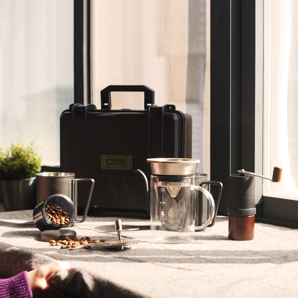 應該有不少人的興趣是露營的,可以送一組完整的露營手沖咖啡,也很有質感,也有一般的手沖咖啡組可挑