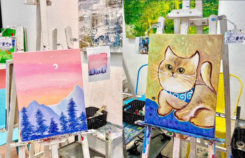- 全自主創作空間,無須預約教師(可現場安排),提供畫作寄放服務,如未完成可於一定期限內回店續畫