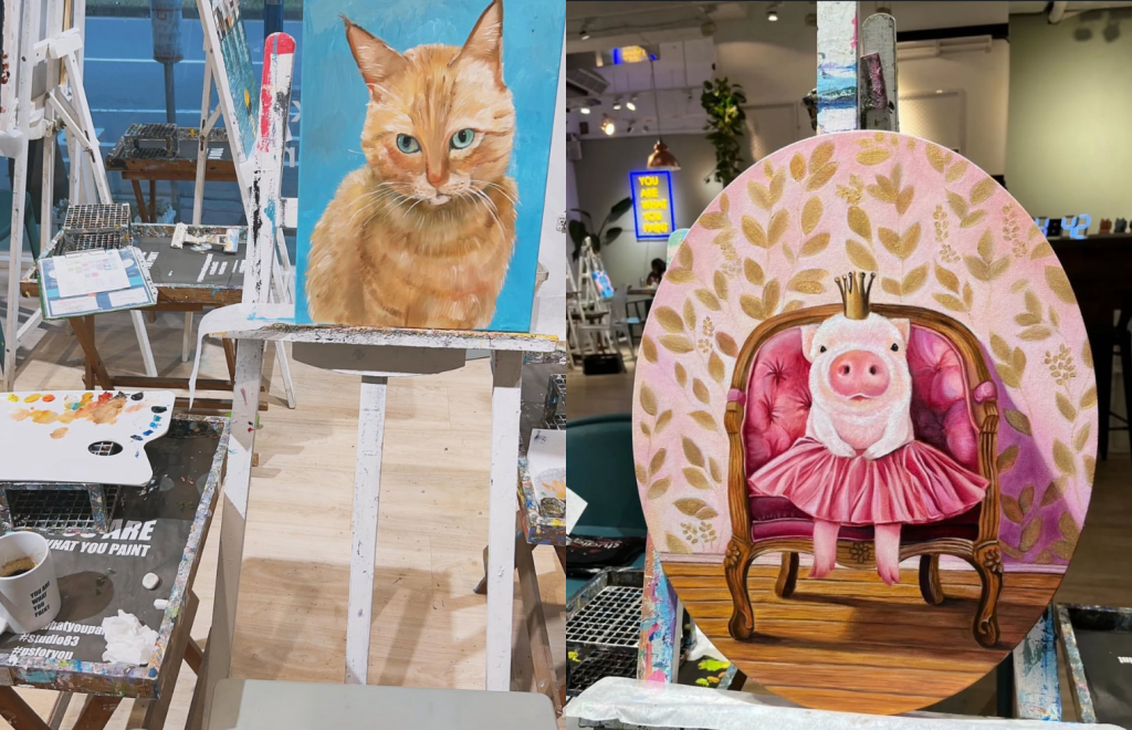 Studio 83 也推出多堂體驗套票方案,畫布尺寸可依方案選擇,部分課程會使用金屬畫板或特殊材質,畫面質感較為現代,完成作品可以直接展示。畫室另提供飲品休息安排,整體節奏偏向俐落、有系統的體驗型課程。