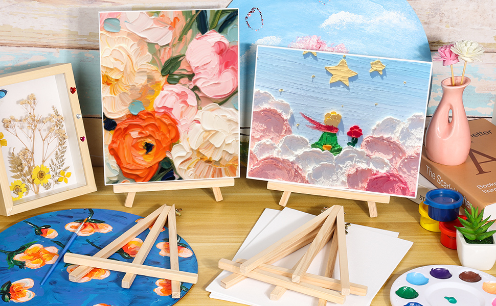 很漂亮的金箔相關課程是悠米的特色之一,包含抽象金箔畫與金箔花創作。課程會引導在畫面中配置金箔元素,搭配顏料層次與留白,使作品呈現明亮、裝飾性較高的視覺效果。部分金箔與油畫棒課程會搭配畫框完成,成品更接近可陳列的居家藝術品。