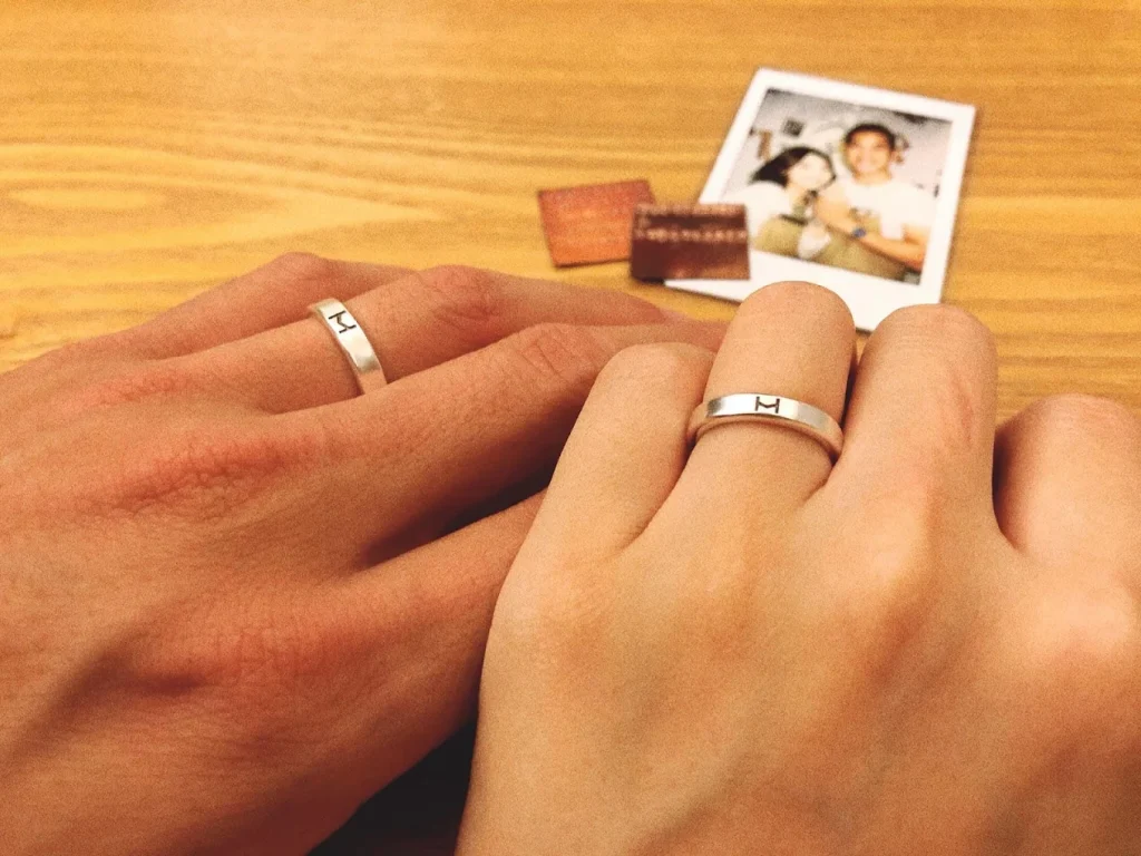 課程採全預約小班制,一人也能開課,確保了教學品質與私密感,特別擅長引導學員共同完成作品,增加互動的樂趣。除了基本的敲字、塑形,還可以加價選擇更具個人化意義的服務,如雷射雕刻指紋、鑲嵌誕生石或電鍍不同顏色的K金。課程結束後,老師不僅會幫忙拍攝許多精美的側拍照,還會贈送一張拍立得,將當下的幸福瞬間定格為永恆的紀念品,許多體驗過的情侶都留下了極高的評價。