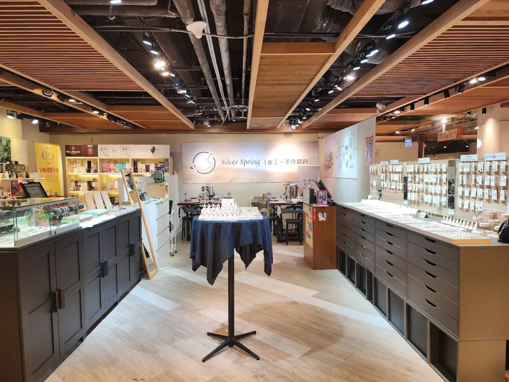 於最熱鬧的西門町誠品生活武昌店內,生意非常好,Silver Spring 金工以獨特的「免基礎、零失誤」教學理念,創辦人茉莉老師擁有多年教學經驗,她將複雜的金工技術淬鍊、簡化,設計出讓任何人都能輕鬆上手的療癒課程,目標是讓每位學員都能自信地變身「一日金工達人」。