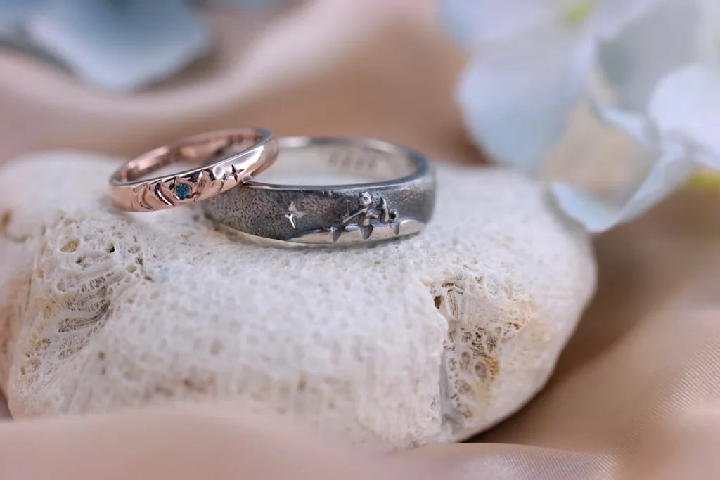 - 蜜蠟雕刻 (Lost-Wax Casting):一種更接近雕塑的技法。會先用特製的硬蠟,以雕刻刀、銼刀等工具,精雕細琢出想要的戒指或墜飾樣貌。完成的蠟模會交由工作室製作成石膏模具,再將高溫熔融的金屬液體澆灌進去,冷卻後取出成品進行打磨。