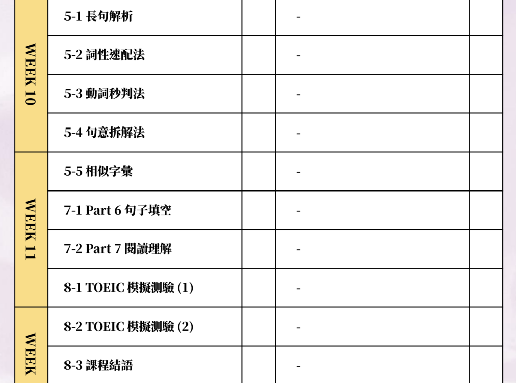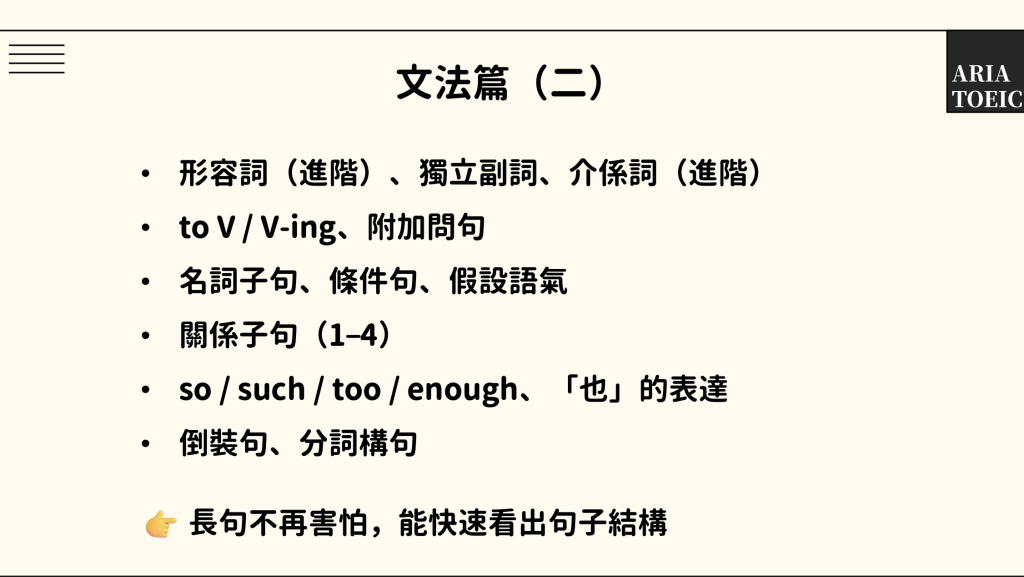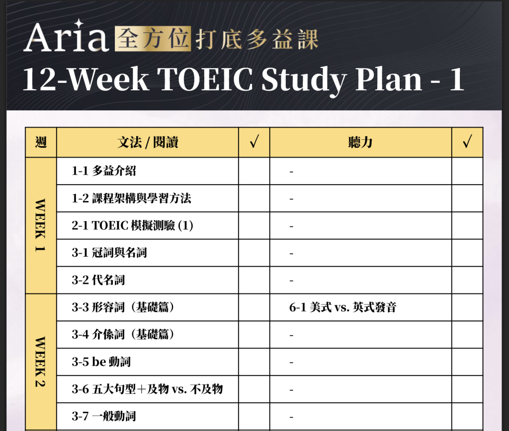 Aria 全方位打底多益課 課程架構