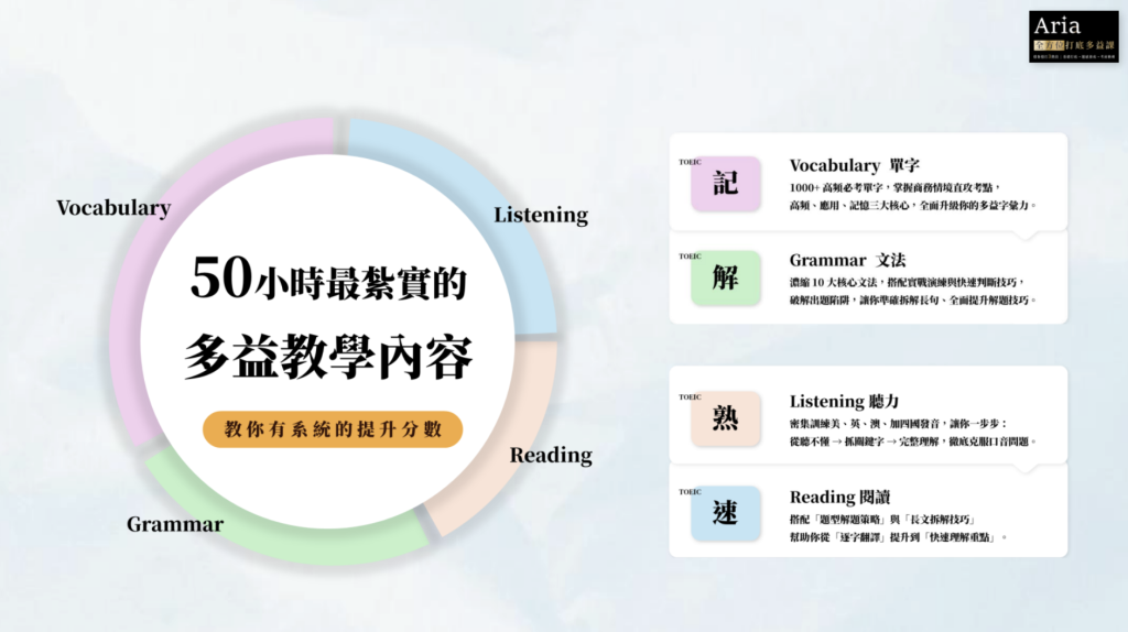 Aria 全方位打底多益課 課程資訊