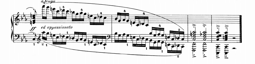 〈冬風〉練習曲左右手各自承擔高強度挑戰:快速奔流的音群、大跨度的八度跳躍,以及需要極度控制的觸鍵與句法處理。即使音符密集、速度飛快,旋律仍必須被清楚地聽見,否則整首曲子只會剩下噪音,在將近四分鐘的演奏時間裡,對演奏者的體力與精準度都是極端考驗。