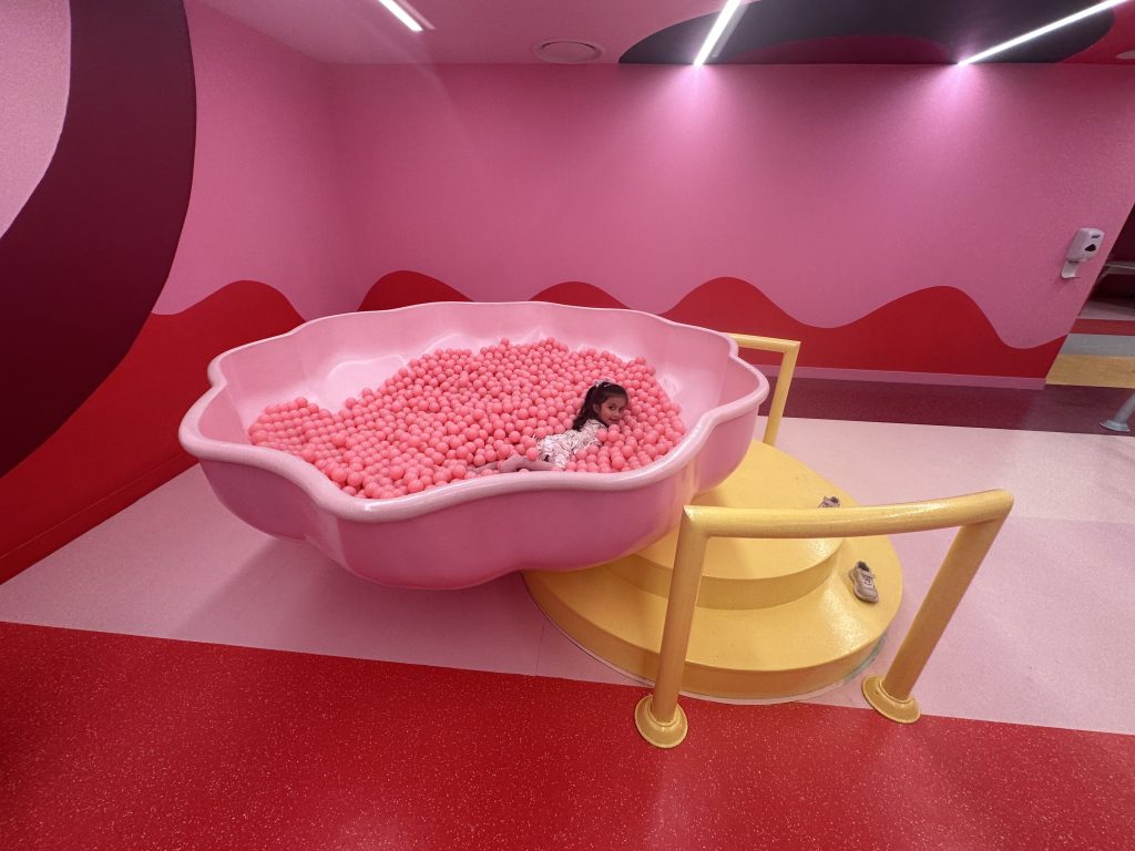 Sprinkle Pool,糖霜泳池,整個博物館最經典、最代表性的區域,一整池的巧克力米,可以直接跳進去,釋放所有壓力