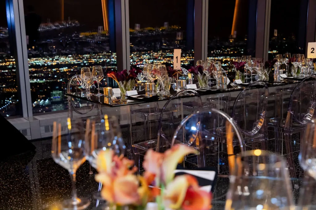 位於大樓塔尖內部,搭乘透明電梯即可抵達。